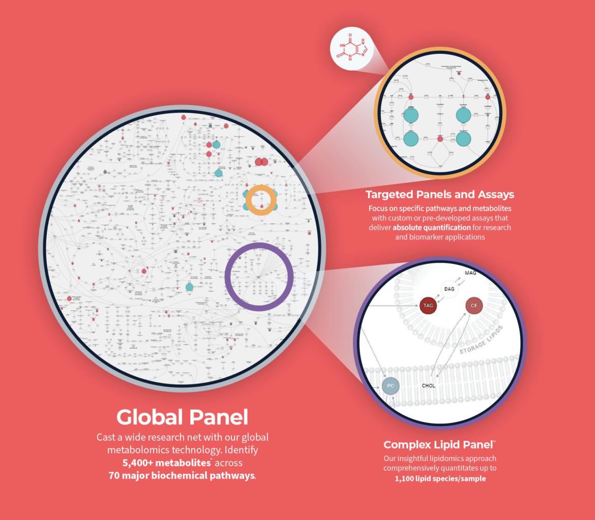 Mit der globalen Metabolomics-Technologie decken Sie ein weites Spektrum ab. Identifizieren Sie über 5.400 Metaboliten in 70 wichtigen biochemischen Stoffwechselwegen.